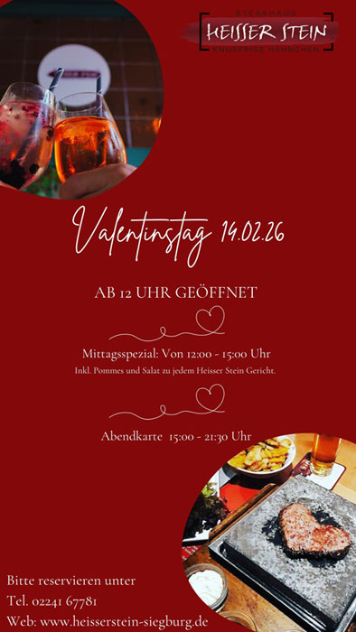 Sie planen Ihre ganz persönliche Veranstaltung im Restaurant „Heisser Stein“. Ob beim Geburtstagsessen, Firmenessen oder Hochzeitsessen stehen wir jederzeit beratend unter 02241/67781 zur Verfügung.
